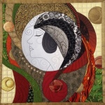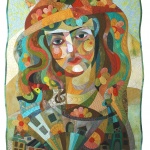 Rozkładając przed sobą paletę wielobarwnych fragmentów tkanin, nie myśli o pracy; to dla niej urzekająca zabawa z dzieciństwa, gdzie każde zestawienie kolorów zaskakuje, a odkryta nowa harmonia przyspiesza bicie serca. Układając fragmenty tkanin w mozaikę, tworzy własne przestrzenie, zaludniając je postaciami i symbolami, tworząc obrazy z tkanin.