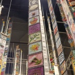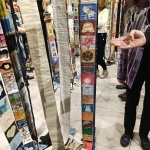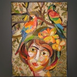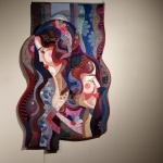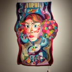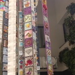 Druga, to bardzo oryginalna wystawa “Round Bobbin”, która podróżuje po europejskich krajach zrzeszonych w EQA. Projekt ten powstał z inicjatywy szwajcarskiej gildii Patchquilt, w ramach obchodów 35-lecia jej powstania. Pośród wszystkich zawieszonych prac podziwiać mogliśmy prace naszych stowarzyszeniowych koleżanek, Agaty Jabłońskiej Smolińskiej i Sylwii Ignatowskiej. W atrium Domu Kultury w Skierniewicach wszystkie prace prezentowały się fantastycznie. Powieszone zostały na ruchomej ramie. W pierwszej kolejności można było podziwiać prace górnej części kolekcji, która po chwili poszybowała w górę na wysokość ponad 3,5 metra i wystawa zaprezentowała się w całej okazałości.