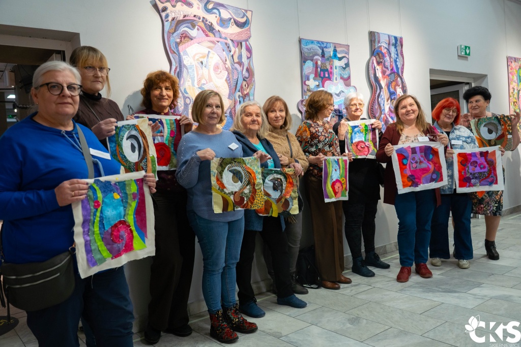 W sobotę, 7 lutego 2026 r. w Centrum Kultury i Sztuki w Skierniewicach zainaugurowaliśmy obchody 10-lecia istnienia Stowarzyszenia Polskiego Patchworku. Rozpoczęliśmy je kursem mistrzowskim „Fale i koła”, prowadzonym przez światowej sławy quilterkę, projektantkę, pisarkę i dziennikarkę mieszkającą we Francji Gallę Grotto. W kursie uczestniczyło 11 członkiń Stowarzyszenia Polskiego Patchworku, tłumaczenie prowadziła Wiktoria Podwińska. Na podstawie trzech projektów przygotowanych przez Gallę powstało wiele ciekawych i różnorodnych prac.