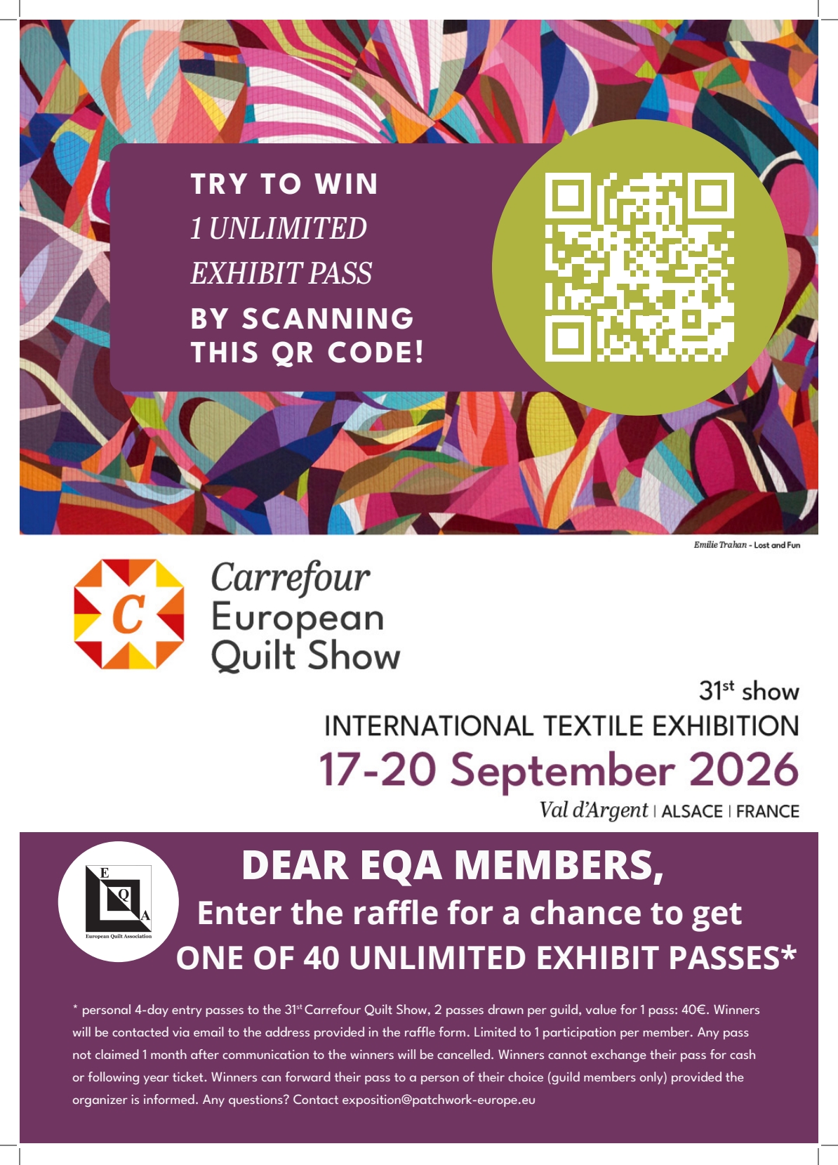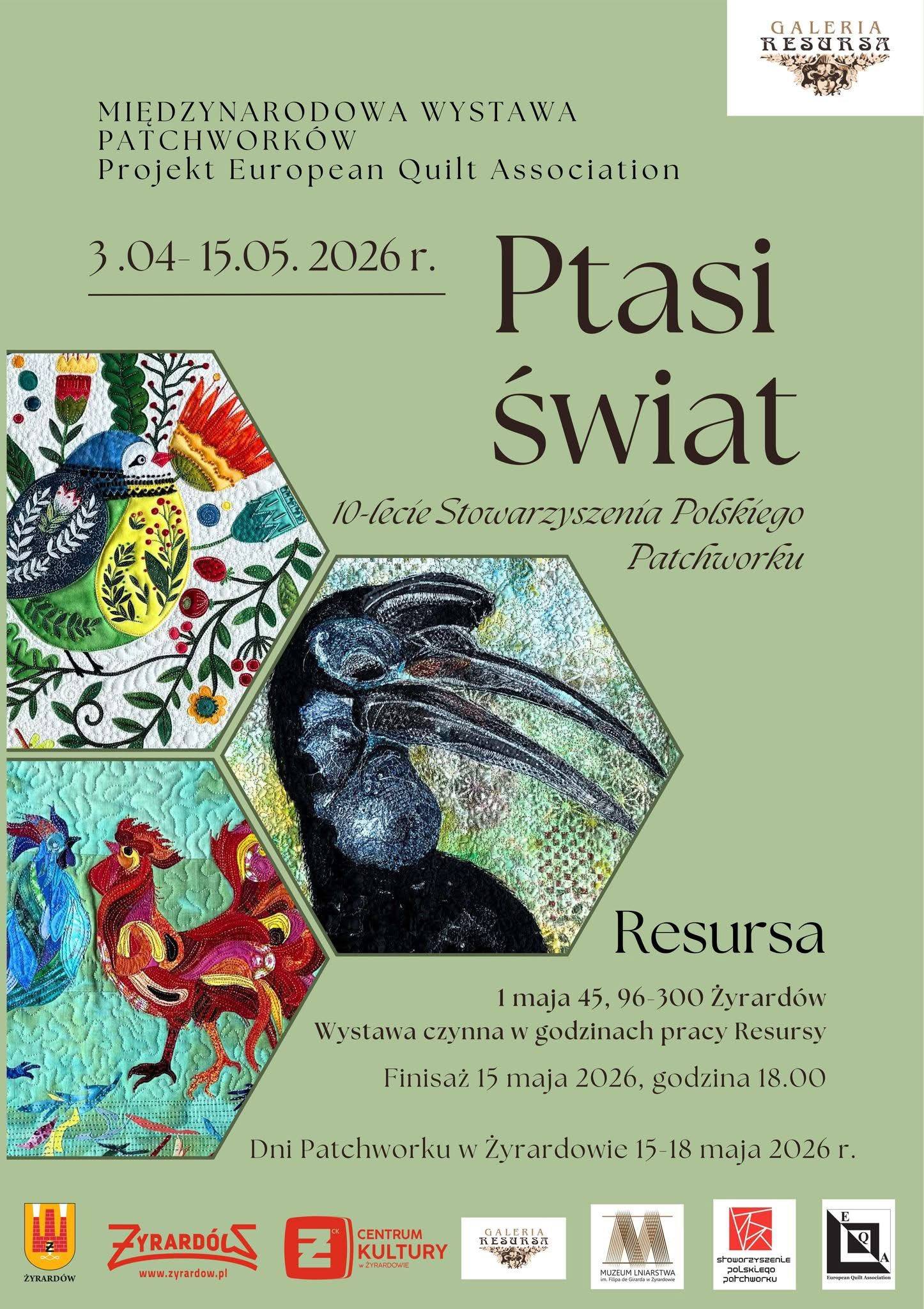 Zapraszamy na wyjątkową wystawę jubileuszową z okazji 10-lecia Stowarzyszenia Polskiego Patchworku – barwną i inspirującą podróż przez świat tkaniny, koloru i nieograniczonej wyobraźni. Prezentowana ekspozycja to niezwykła okazja, by zobaczyć wybrane, najbardziej efektowne prace...