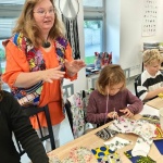 – szycie podkładek kuchennych wykonanych japońską techniką boro z tkanin farbowanych własnoręcznie przez twórczynię